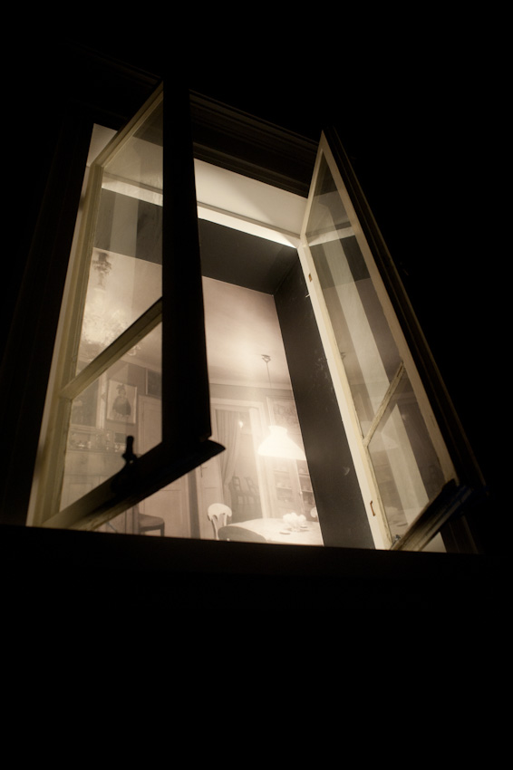 przez ramę okienną.