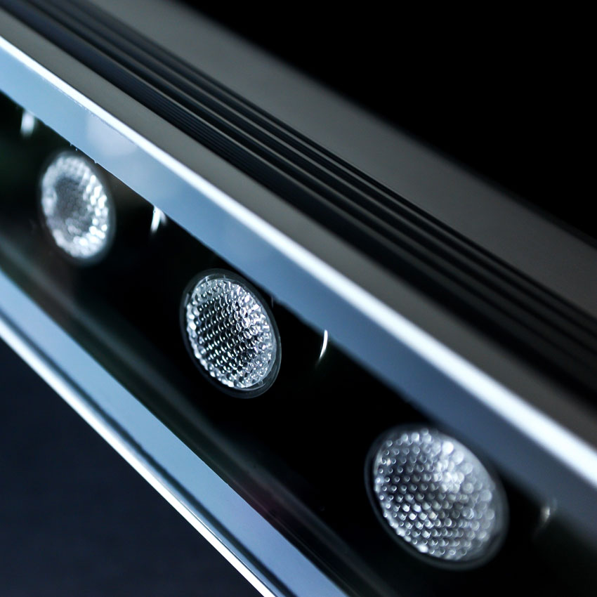 • Na każdej diodzie soczewka rozpraszająca typu "plaster miodu" - bardzo dobry stopień zmieszania barw składowych, zapewniający maksymalną jednorodność barwy na oświetlanej powierzchni