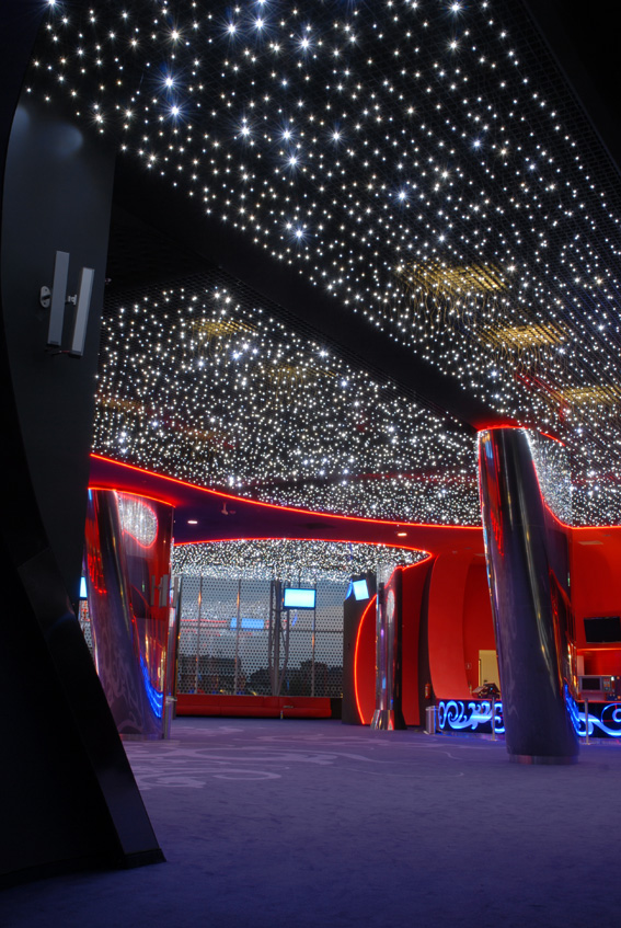 Powierzchnia sufitu z diodami: ok. 450 m2, ok. 15 000 diod, całkowity pobór mocy ok. 750W