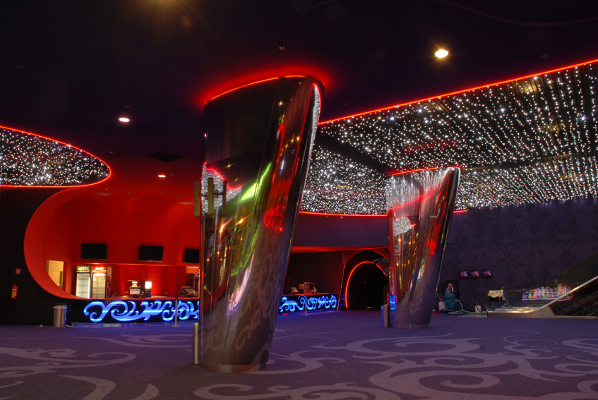 Naszym zadaniem była realizacja koncepcji oświetlenia sufitowego we foyer Multikina przygotowanej przez studio projektowe Robert Majkut Design. Zadanie rozpoczęliśmy od zaprojektowania i wykonania prototypu płyty sufitowej z zamontowanymi zespołami diod LED. Następnie wykonaliśmy projekt instalacji elektrycznej oraz projekt ułożenia i połączenia płyt w obrębie całej realizacji. Zajmowaliśmy się również montażem płyt na miejscu budowy oraz przygotowaniem szczegółowej dokumentacji powykonawczej.