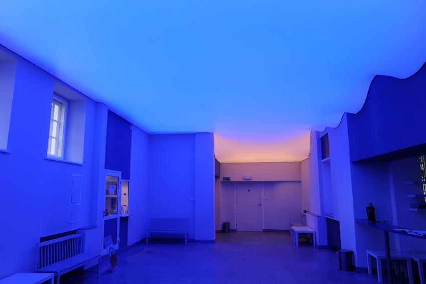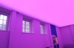 Nad sufitem we foyer, który ma powierzchnię ponad 60 m2 zainstalowaliśmy 36 rolek 5-metrowych taśmy diodowej LED RGB. Instalację tworzy dodatkowo 6 zasilaczy i 6 wzmacniaczy sygnału sterującego, oraz sterownik RGB z pilotem radiowym. Łączna maksymalna moc (dla światła białego) zużywana przez tę instalację nie przekracza 500W.