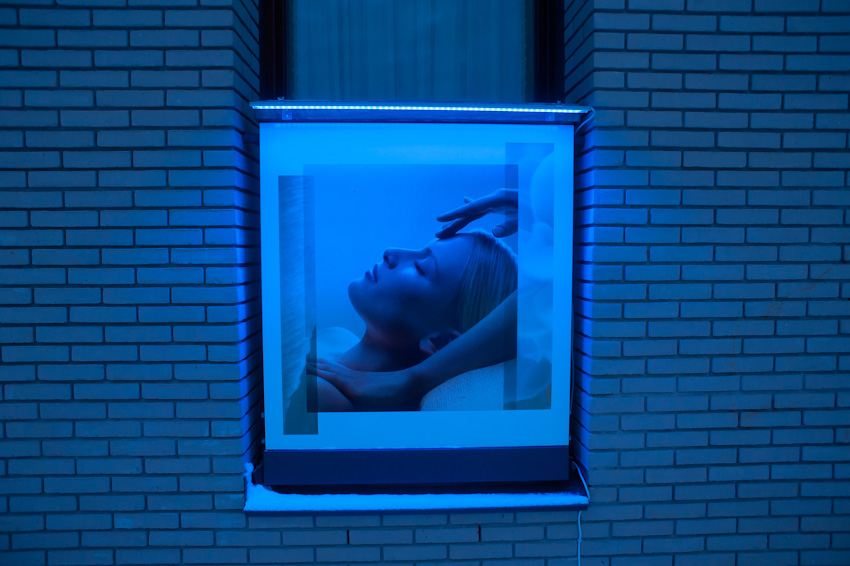 Do oświetlenia grafiki na balkonach użyliśmy skonstruowanych przez nas oświetlaczy zbudowanych ze specjalnych profili aluminiowych z soczewkowatymi osłonkami, dzięki którym światło pochodzące z diod RGB jest skupiane i lepiej oświetla powierzchnie z niewielkiej odległości. Do budowy opraw podświetlających dojście do salonu użyliśmy masywnych profili z grubą osłoną z PMMA, które są zhermetyzowane za pomocą silikonu. Oświetlenie jest używane przez całą noc. Pobiera maksymalnie ok. 300W mocy, dla koloru białego. W trybach barwnych średni pobór mocy nie przekracza 50% poboru maksymalnego.